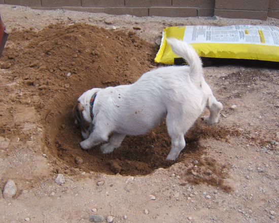 The first time Jesse wanted to help out in the garden, he was a puppy. I was digging a hole, and he came over to investigate. When he realized I was creating a hole in the ground, he wanted to join in!